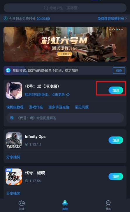 1、首先在本站下载安装代号鸢港澳服,然后打开加速器,在加速器内启动游戏。