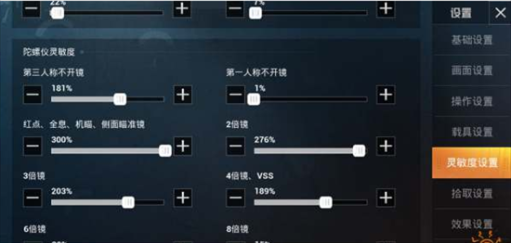 灵敏度的设置主要依据个人的操作习惯来,手指反应快慢决定灵敏度数值的高低。高玩们可以自由发挥,这里为普通玩家推荐一套适用广泛的数值设置。