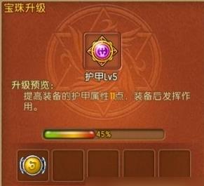 2、将宝珠放在升级槽内可以通过“升级”按钮消耗其他的的宝珠来增加经验进行升级。