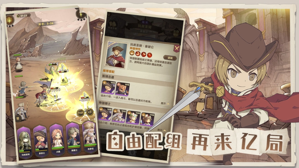英雄有远攻近战辅助等多种定位,攻击方式有物理攻击和法术攻击,战斗时要注意阵容布局……停停停!一听这些是不是头都大了?亲爱的冒险者,不要害怕!