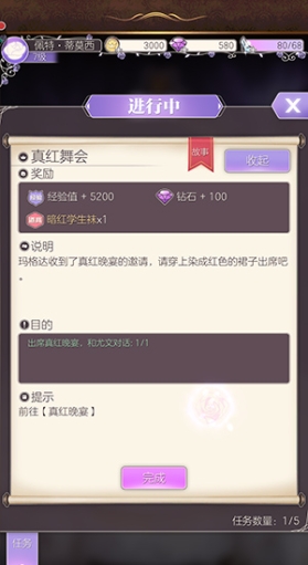 1、点击夫人的头像即可进行主线任务的查看,在完成任务后也别忘了领取任务奖励。同时,玩家还可领取委托任务,委托任务会有不少的奖励哦。玩家在舞会中也会遇到小目标,完成后也能获得爱心用来进行抽奖。