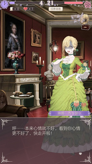 4、玩家与舞会中人闲聊,投其所好可增加好感度,玩家要把握住好感度提高的时机进行情报的获取。不同的人所感兴趣的话题不同,玩家在与之交谈前记得记住话题类型再谨慎选择聊天时的内容哦。同时玩家还可在舞会中进行偷听,不过要小心不要被发现。