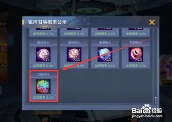 使用光辉宝石召唤,即可有概率获得万能碎片
