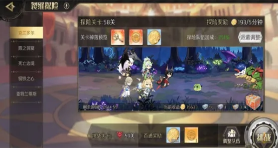 在通关图示的这几个副本的地狱难度后,就会开启该地区的裂缝探险,裂缝探险的层数越高,出战的角色星级与稀有度越高,获得的金币与羁绊物品就会越好。