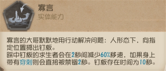 ⑦ 破轮的钉板可以无视先知的役鸟守护、园丁的护盾,对其造成减速,如果求生者身上有穿刺则会被禁锢。