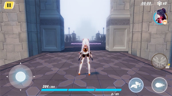 作为一款动作游戏,游戏的画面自然不用多说了,我们可以通过右上角切换角色。通过左侧虚拟摇杆进行人物的操控,在屏幕右侧有3个按钮,分别是闪躲,普通攻击以及释放技能,技能需要蓄力完成后可以释放。