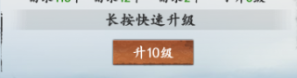 在侠客界面点击右上角升级按钮,会进入到该侠客的升级界面,侠客最高等级不能超过主角玩家的最高等级,同时升级侠客所需要的经验书有四种,分别是:初级经验书、中级经验书、高级经验书、大师经验书。经验书提供的经验加成由绿色到橙色逐步增加。侠客升级可以通过点击升10级按钮快速升级
