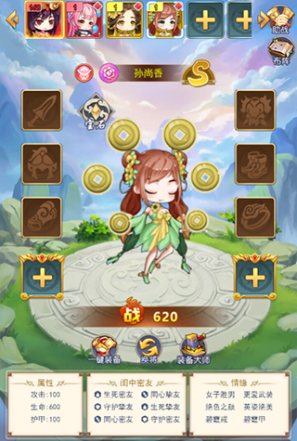 游戏中武将间相互触发羁绊,例如孙尚香与祝英台触发同心挚友,触发后孙尚香的攻击+1000,体现了这个虚拟世界中各个女侠之间的友谊关系,收集其他所需武将,也可以触发不同羁绊,获得不同的属性。