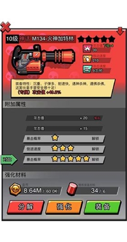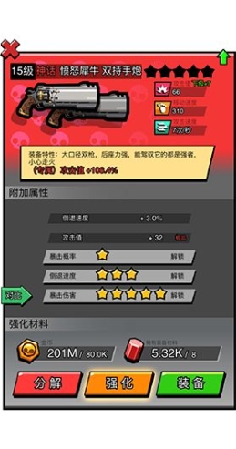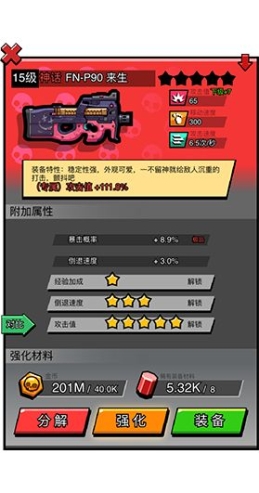 收集道具来培养你喜爱装备,升级进化,培养最强杀器!使用方法: