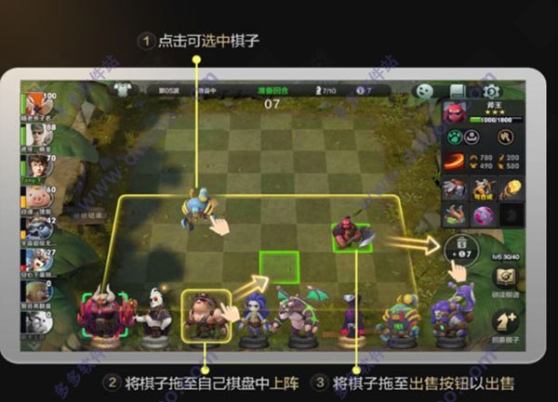 3)将棋子拖至出售按钮或者选中棋子后点击右侧出现的出售按钮都可快速出售棋子
