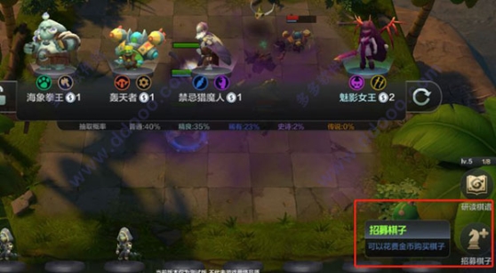 4)在招募面板的下方会展示抽取各品质棋子的概率;