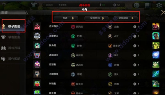 自走棋手游共有5种品质的棋子,从低到高依次是:普通/罕见/稀有/神话/传说,每种品质的棋子购买时的花费以及招募所需等级都各不相同。由于现在的棋子共55个,这里就不做长篇累述了,我们可以在游戏内的图鉴,查看到每个棋子的招募价格,棋子属性,种族职业。
