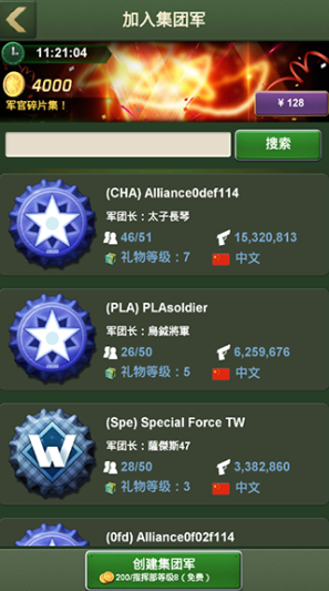 个性头像框,装扮你独特的指挥部从屏幕下方的入口进入集团军,没有集团军的小伙伴可以先加入集团军,找到自己的军团组织