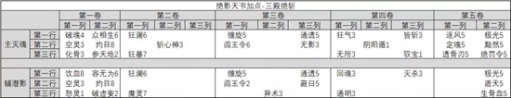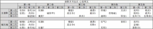 天书主潜影,提升续航能力。辅灭魂,主要考虑生死判有易伤,天书被动有伤害浮动,总体伤害比较高,同时恶即斩多个定身控制。
