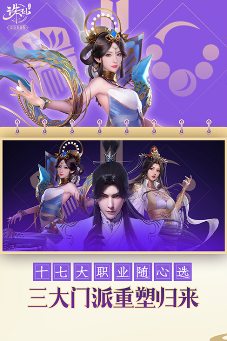 青云、天音、合欢、鬼王、焚香、云梦、灵契、鬼道8大门派,两种体型选择,超自由捏脸,近百职业形象设计,搭配性别转化、飞升玩法,一个账号拥有多种角色体验!每个职业拥有12大主动技能和8大被动技能,演化出百余种搭配组合,创造属于自己的终极技能。让PVE更轻松,PVP更给力!同时每个职业将有3种以上不同的培养方向,职业多线发展使PK更具策略性,让PK过程变化无穷。