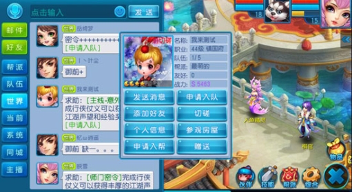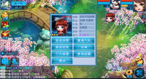 2、点击对方人物角色走到他身边,右上角有个人物头像,点击人物头像出现你可对对方进行的操作,点击添加好友。
