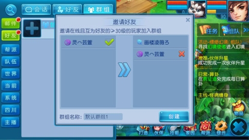 5、玩家可以在“群组”分页中建立群组、添加群组成员,并点击对应群组开始聊天。