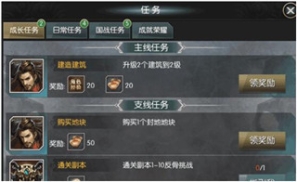 在游戏中一共有两种形式的城池:主城、封底。主公可以在主城中使用积攒的功勋值、元宝等兑换资源;封底则可以由主公自主规划打造,升级建造。主城: