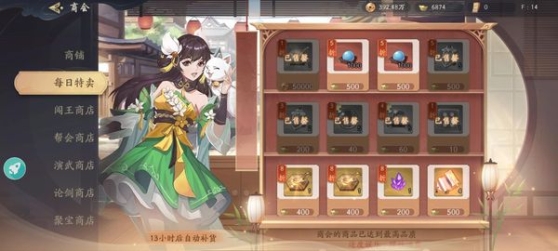 每天商店都会刷新低价的抽卡令牌,零元党可以把元宝留到这个时候用,这样可以省元宝,商店里面金币的物品可以扫一下,目前我还没有遇到过缺金币的状况,像金思南有时候会刷出200元宝一个,这个也可以扫一下,不会亏太多可以赌一下,因为大部分的物品会伴随少量的抽奖卡,出一张就是赚。