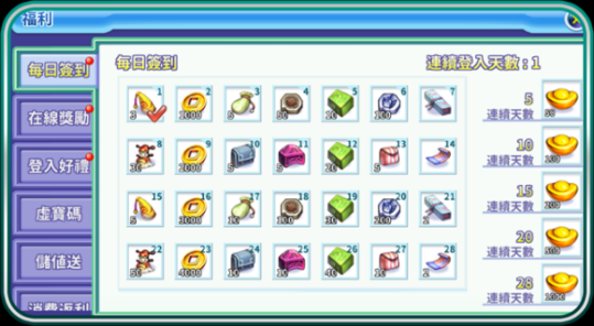 每日签到、在线奖励通通免费拿!奖品丰富唷!