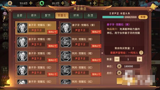 第四个推荐的是觉醒石道具了,这个道具的稀有程度是很高的, 关系到伙伴的觉醒玩法。不过觉醒石对于声望等级是有要求的,兑换的消耗也比较大,大家要做好前置的提升。