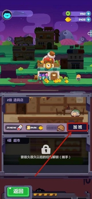 3、进入打工的界面之后,再点击其中的【加班】选项,进入确定加班的界面。