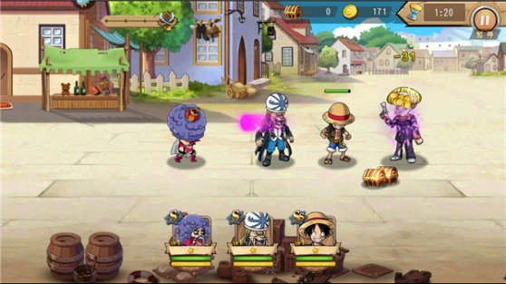 航海王启航是根据日本热门动漫官方授权改编的一款2D横向卷轴动作RPG手机游戏,继承了原作《海贼王》的基本设计风格。游戏画面极为细腻精美,色调清新,笔触柔和。人物造型采用了Q版的三头身设计,同时保留了角色的主要特色。此外,游戏中的用户界面和功能按钮与动漫中的人物及场景完美融合,功能布局设计也非常合理,使得玩家可以轻松明确地找到所需的功能按钮位置。