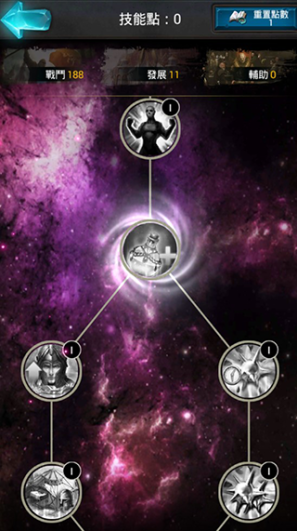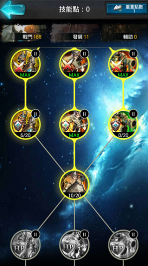 在加点顺序上面,传统建议玩家采取发展→辅助→战斗的路径吧,毕竟游戏中有资源经济能力才能有作战能力,辅助只是提升一些效率;富有挑战的想法可以按照发展→战斗→辅助的加点顺序,因为最终还是围绕战斗技能上研究深耕,从而让我们玩家的实力所向无敌。【新增内容】