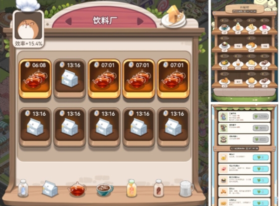 放弃了种田玩法,减少了下种子、收割的地面交互,改为所有商品都是在工厂的树上完成,树上就会长出美味的食物,有奶茶、爆米花、煎饼果子……商品生产没有前置商品组合的模式,让完成订单可以更直接更快捷。订单系统出了常规的金币名单、限时订单外增加了旅行订单,为此还设计了一个特别爱孤独的动物,如果它突然不好意思不懒了会给你完成一个不一样的特殊订单。
