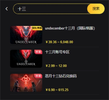 2、进入之后可以直接搜索游戏恶月十三,找到充值入口。