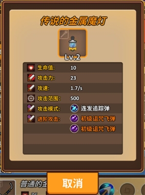 弓箭本身的攻击范围是700,远远高于魔灯和弩等武器,可以很好的发挥风筝的效果。搭配上火球和冰针两个散射攻击的法球,弓箭击中敌人后散射火球,火球再散射冰针,游戏就可以玩一把畅快的冰与火之歌。