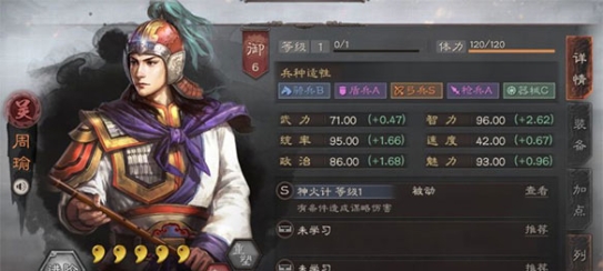 从周瑜的战法来看,周瑜就适合带较高发动率的主动战法,或者可能你会灵机一动发现这样一个战法,可以考虑是否合适(当然这里只是举个例子,实际上白眉并不适合周瑜)。