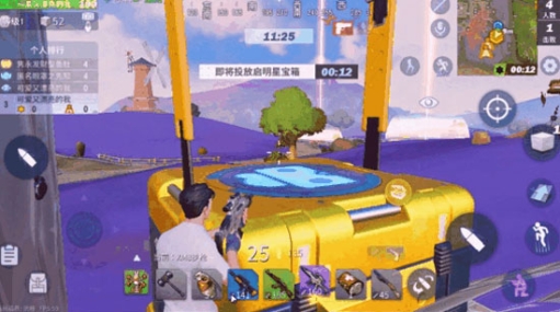 这时,各位探险家可以灵活运用建造和挖地这两个功能来躲避狙击:发现大空投时,大家可以先从有掩体的地方开始挖地道,直奔大空投。并在开启大空投时,及时建造防御堡垒,防止被附近的对手狙击。
