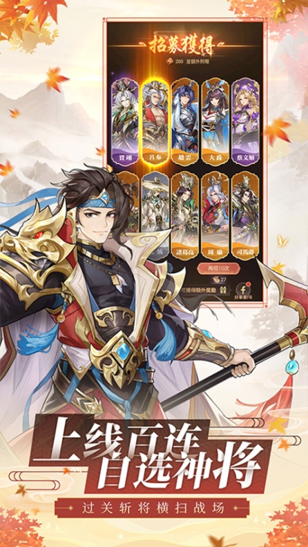 2、登录领400抽,可自选橙将,搭建满配阵容;