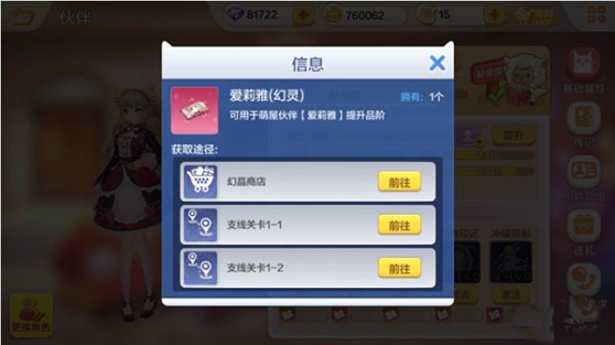 消耗相应幻灵可用于伙伴的品质提升。不同的支线关卡掉落不同的幻灵,当达到可进阶数量时,在伙伴的属性界面点击提升即可。解锁、观看秘密故事也会有相应的幻灵奖励。另外,幻晶商店会随机刷新到不同的伙伴幻灵,大人们别忘记去刷新哦~
