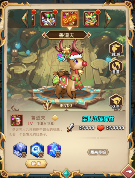 3、增加初始能量,友方英雄收到致命伤害时,驯鹿将为其承受该次伤害。