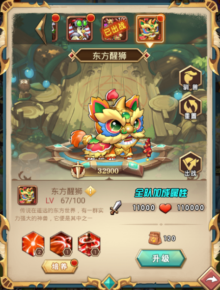 3、有很大概率激发醒狮之舞,为我方攻击最高的几位英雄提供额外的攻击力和速度加成。作为春节套装的一员,它还具备一套技能,可以增强友军的攻击力和生命值,并赋予友军祝福印记,在提高攻击的同时,还能抵御一次控制技能。是不是很心动呢~