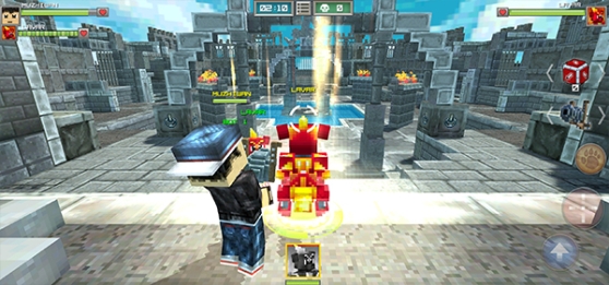 在我们坐收渔翁之利杀死机器人后,他的其他小伙伴就会瞬间转头攻击你,这时候就要施展你的遛狗技术了,一直绕着场地跑就行了,虽然他能打到你,但是其他机器人会攻击在你后面的他,如果你对操作有信心,也可以边跑边回头打他,就是走砍,等他快没血时一斧子收掉,其他机器人原理相同,记得能力不够时不要硬碰硬,要合理利用场地。