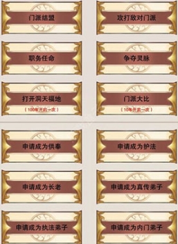 5、任务大厅:做任务,从而获取宗门贡献(游戏货币之一),满足相应任务要求,可做相应的任务,获取贡献。升级需要 可做任务。
