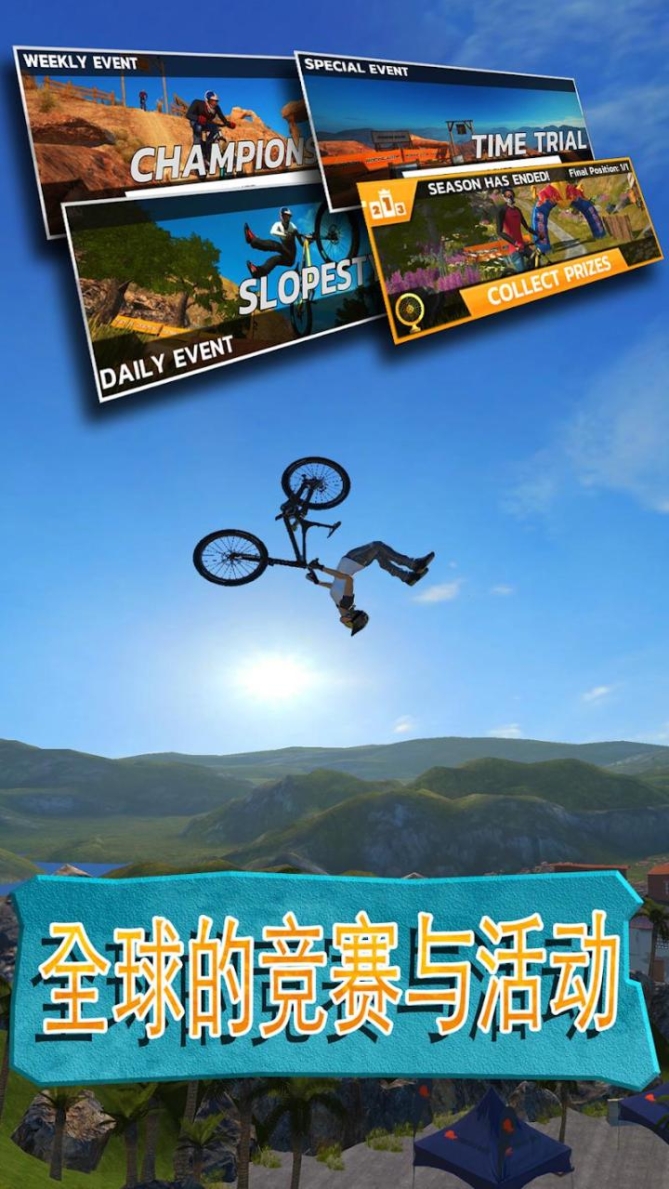 3、加入了丰富的极限特技元素,驾驶酷炫的自行车挑战不同的巅峰。