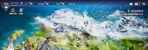 如果想去别的地方,点击右下角的“冒险”进入世界地图。此时,右上角会显示您可以自动前往的当前剧情进度。除了主线必须走的路,有时候还会有支线任务和有额外奖励的宝箱。而且每次来到一个新的区域,首页的场景和人物对话都会不一样。