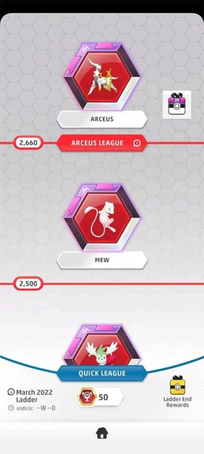 天梯最高段位是阿尔宙斯,最低段位是波克比(不清楚是不是固定的)。
