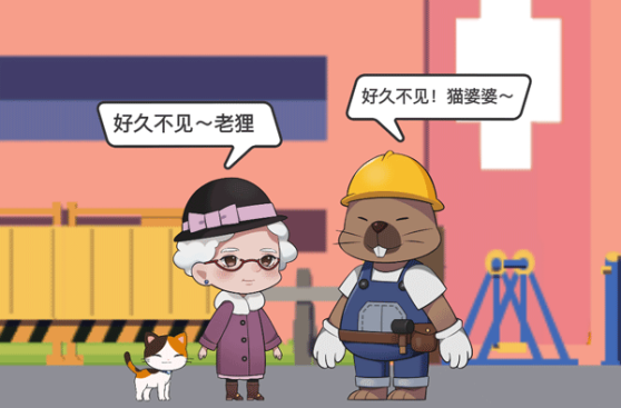 猫婆婆已经在此等候你啦,猫婆婆还把她的老朋友老狸找来了,老狸是大力施工队的包工头,曾帮助猫婆婆夫妇建造幸福公寓。以后的日子里,就有老狸带领的施工队帮助你建造房间哦!