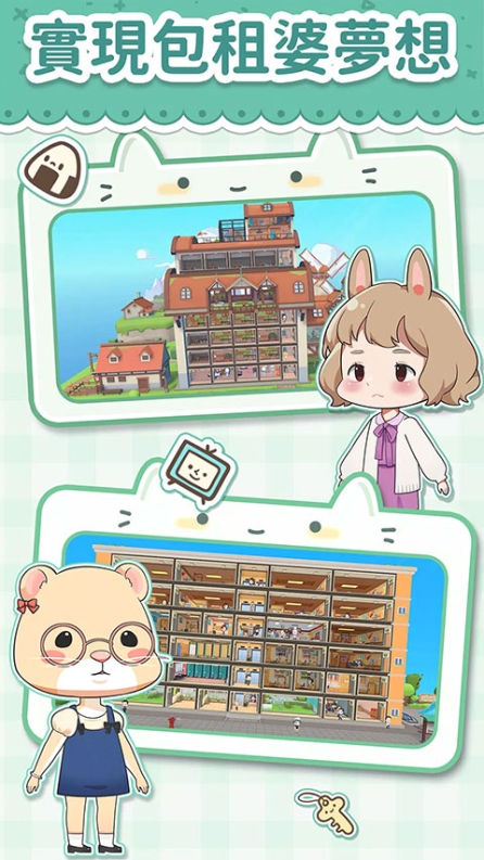 想不想体验经营公寓的乐趣?想不想感受当房东收租的快乐?那就来试试这款 幸福公寓物语游戏 吧!这是一款全新的模拟经营手游,游戏采用卡通风格,不仅画面精美细腻,人物角色也很Q萌可爱,视觉体验非常好!在这里,你将帮助一位婆婆管理一栋漂亮的公寓大楼,作为公寓管理员,你可以自由建造单人间、双人间、家庭套房等各种房型,还可以配置家具、升级房间以提升租客的生活质量,增加租金!喜欢模拟经营的玩家千万不要错过!