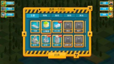 玩家点击下方的建造图标即可打开建造界面,在界面中玩家直接点击即可选择要建造的项目,从道路、住房、办公室到标志物都可以在里面进行选择,每一个建筑的功能和带来的影响都是不一样的,例如住房可以为我们的城市带来更多的人口,而办公室则可以定期为玩家带来利润,此外消防局、警局等等特殊功能的建筑也可以由玩家选择建造,在选择好之后,可以建造的地点将会以高亮显示,玩家之间点击即可看到该地点变成了一个工地。