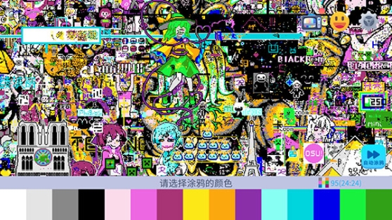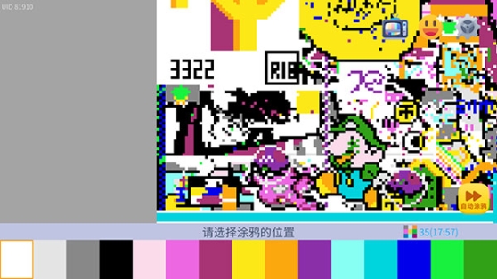 这是一款采用多人创作模式的涂鸦式休闲益智手游,强调多人协作。所有玩家在线连接到同一块巨大的像素画布上进行创作。但为了凸显协作的重要性,游戏为每位玩家设定了绘画限制,具体体现在涂鸦点机制上。在游戏中,涂鸦是通过点击像素点实现的,每次点击会消耗一个涂鸦点。每位玩家拥有的涂鸦点数量有限,用完后就不能再继续绘画。因此,若想完成一幅令人惊叹的作品,就需要玩家们在游戏中共同合作。