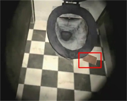 5、灯亮了来到一楼,在厕所可以找到一张卡片,还可以找到很多钥匙。