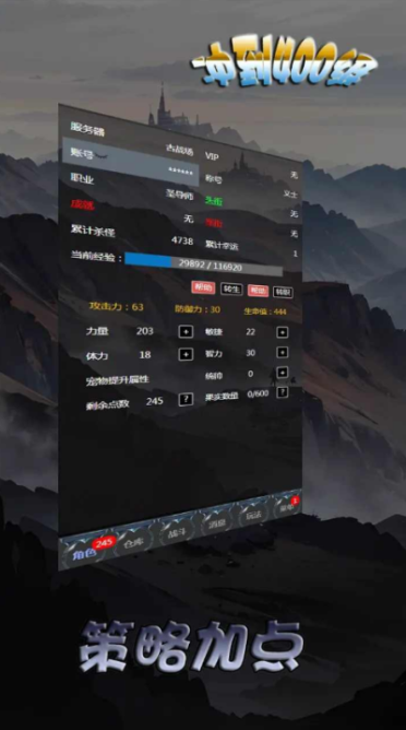 冲刺到400级是一款独特且上瘾的文字挂机手游,通过文字进行战斗与 探险 ,挑战副本以获取宝物,享受刺激的 玩法 。提升等级、强化武器与属性、购置道具,持续增强自身的攻击与防御能力,迎接无尽的挑战。通过不断点击屏幕获得经验值和游戏币,解锁更多道具与场景,展示你的实力与技巧。利用空闲时间来一场刺激的文字挂机探险吧。