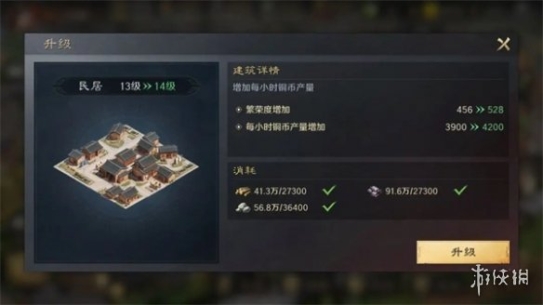 升级内城中的建筑等级可以提升繁荣度,升级级别越高提升的繁荣度越高。