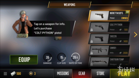 4、在装备栏中,你可以购买各种不同的武器,右侧会显示当前武器的各种属性,方便你了解武器的性能。
